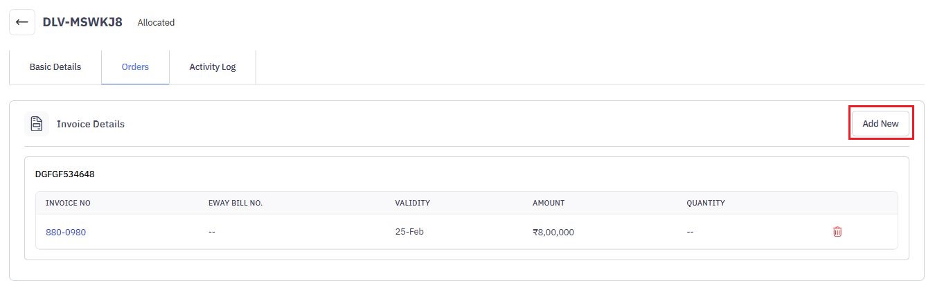 3. On the details page, go to Orders tab, click Add New button.