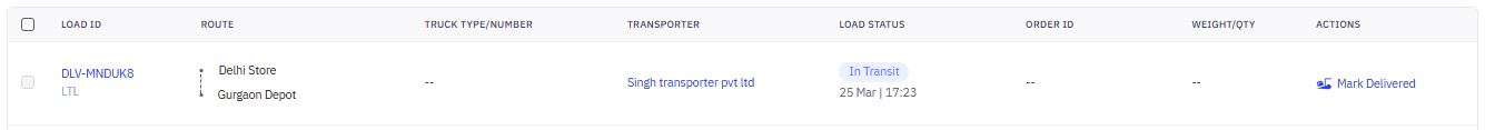1. Select load ID for which you wish to add LR. Its details page will be open.