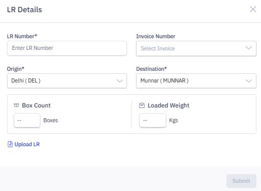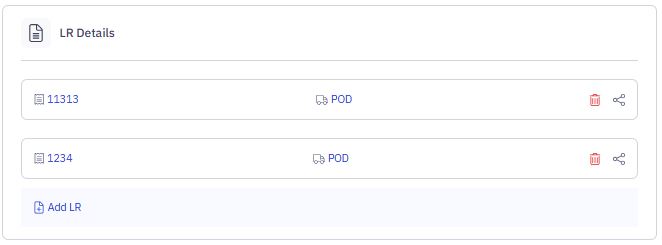 - LR Number: The Lorry Receipt number provided for goods in transit.