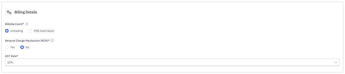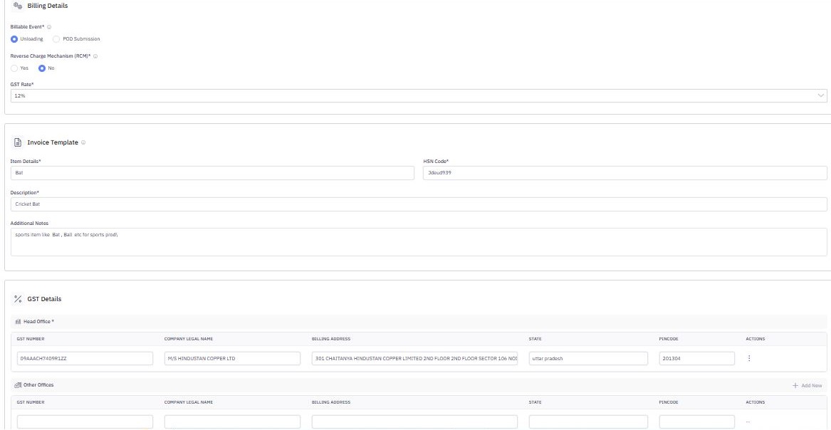 Billing Configuration lets you define how invoices, taxes, and billing rules apply across shipments. By setting up billing events, GST details, and invoice templates, Shipper Admins ensure that invoices are generated accurately and processed smoothly in the Billing Module.