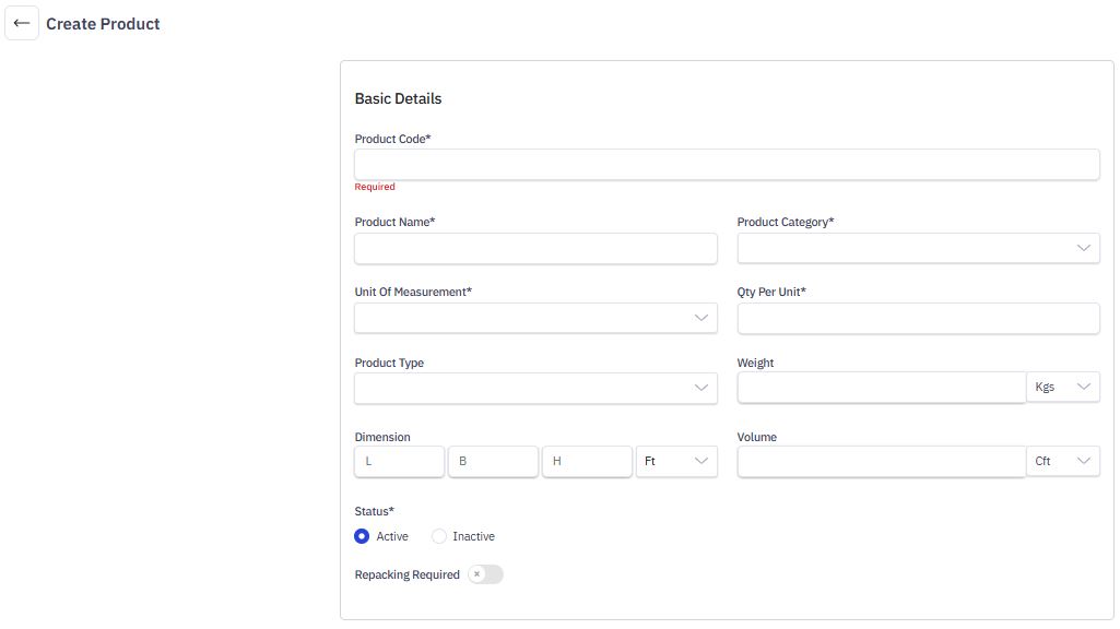 - Repacking Required: Toggle ON/OFF based on whether the product needs repacking.