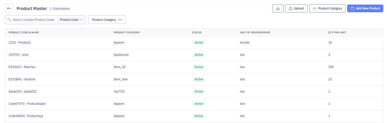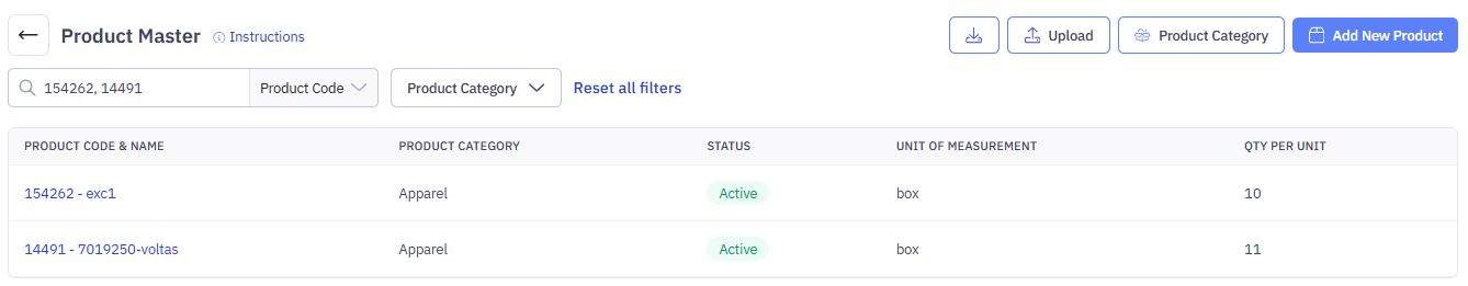 - Once successfully uploaded, the products will appear in the Product Master List.