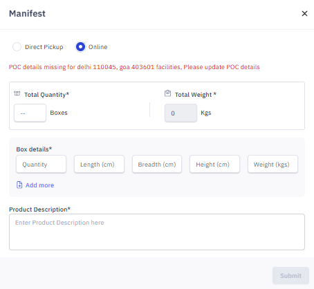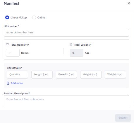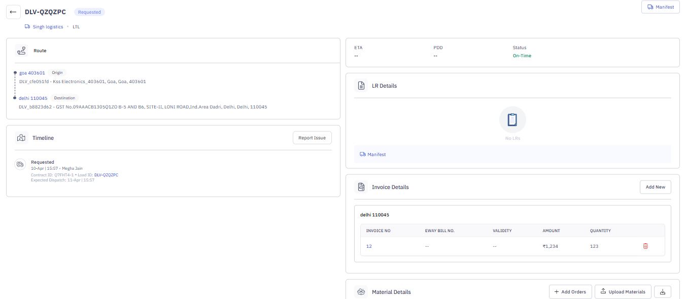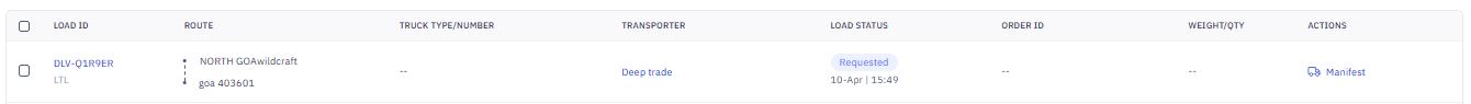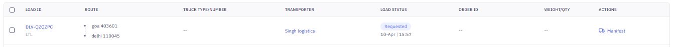 After you indent and create a load, you manifest it to hand it over to the transporter. During this process, you update key information such as invoices, pickup type, and point-of-contact details. Once you submit the manifest, the system assigns the load to the selected transporter for pickup.