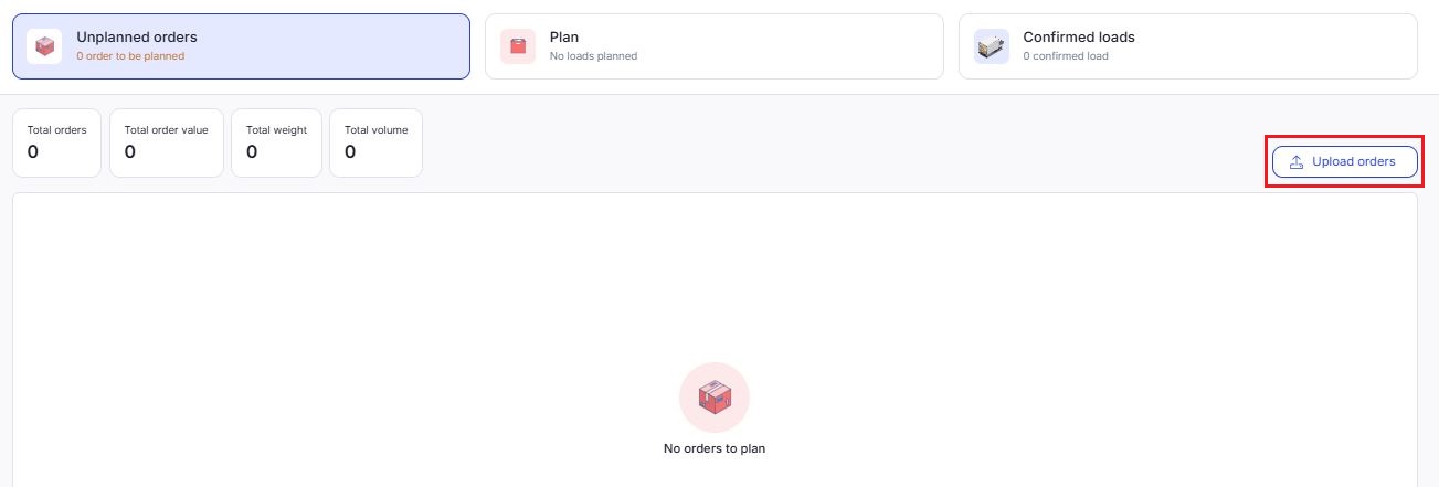 By default, the Planner opens on the Unplanned Orders tab where you upload orders to initiate the planning