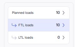 - FTL Loads (Full Truck Loads): Displays only the loads planned as full truck movements.