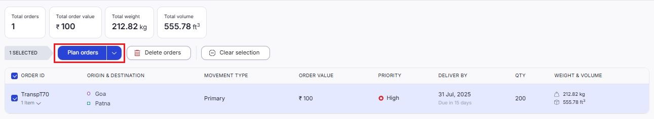1. Select specific orders and use the dropdown next to Plan Orders.