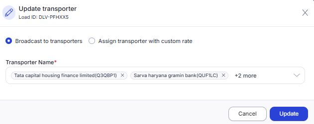 When the transporter is listed as "Multiple", click the ✏️ icon to open the Update Transporter window.