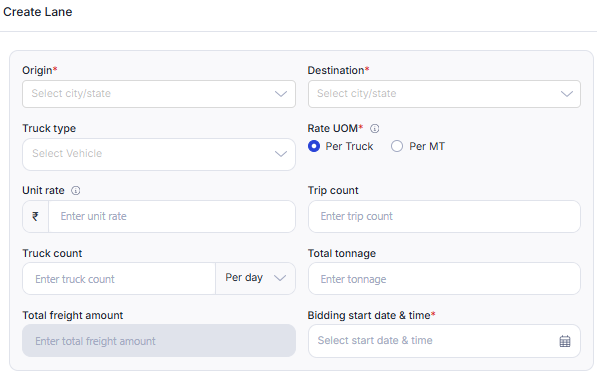 - Unit rate (optional): Enter the rate you're expecting per truck or per MT.