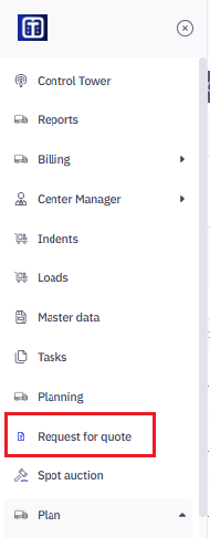 - From the TransportOne UI, go to the Request for Quote menu in the left panel.