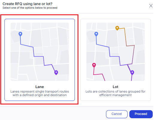 Note: You can select only one option—either Lane or Lot—in a single RFQ. You cannot use both together.