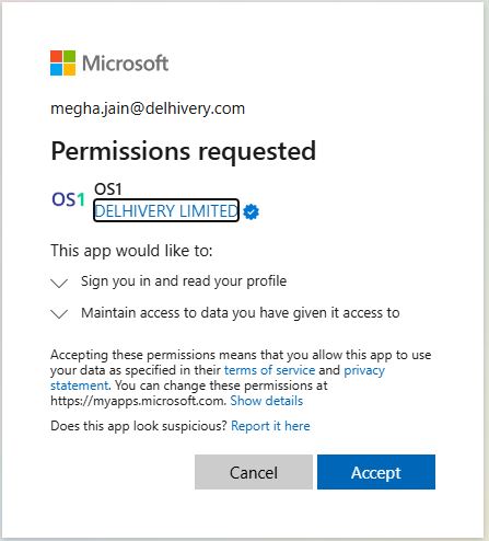 - Microsoft will ask you permissions to access the data. You can accept the permissions request.